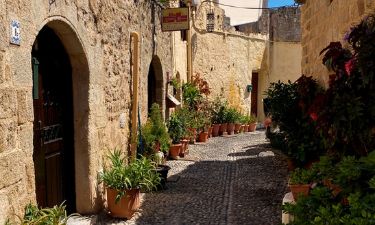 Er man til gammel arkitektur, riddere, små gader belagt med runde sten og i det hele taget gamle bygninger ( nogle steder i smukt forfald) .... så er den gamle bydel i Rhodos by så absolut et besøg værd.